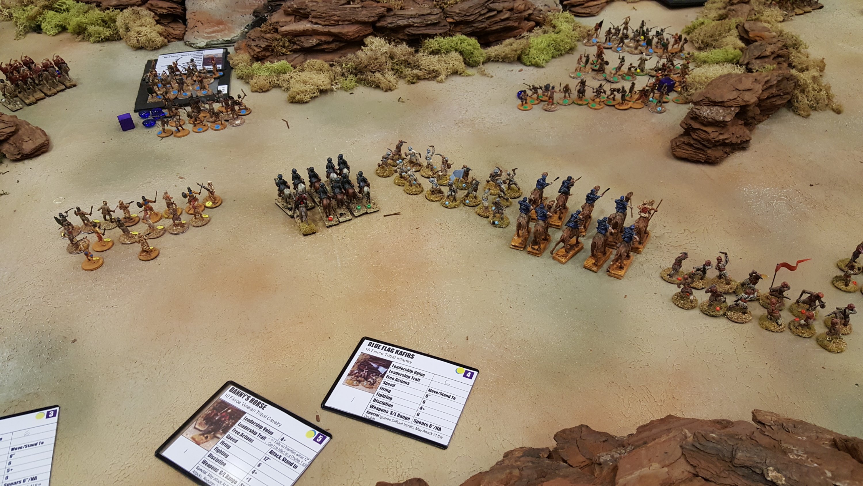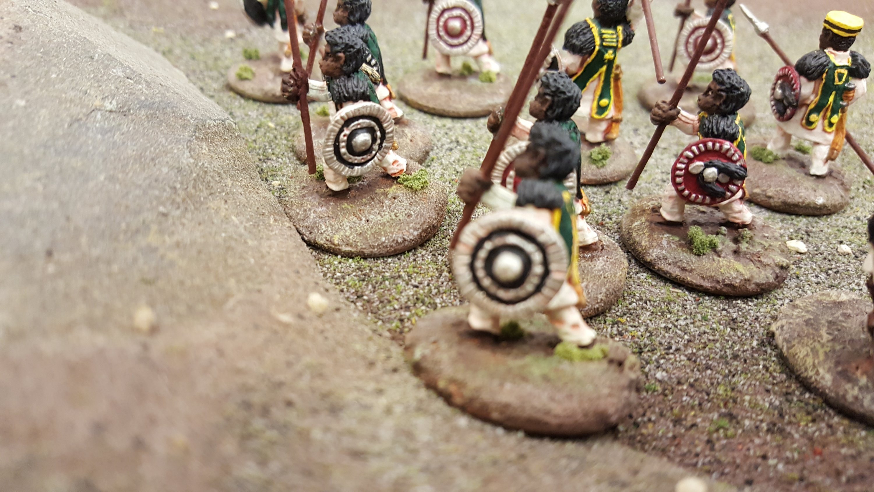 This next game was our first and my younger son and I really enjoyed being Abyssinians and trying to drive off the Italians from our village. This was inspiring because earlier this year I finished painting an additional 200 or so of the same Bicorne Miniatures Abyssinians for a game that I was running at Cincycon (ultimately having to cancel at the last minute due to a family emergency). Great figures and a less run-of-the-mill setting.