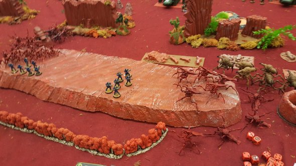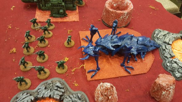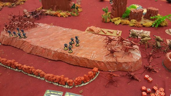 There were two starship troopers games I saw – this was the first and I managed to capture a few pics – also inspiring because i have managed to build and paint these armies for the last 10 years but never (and I mean not even once) have I run a game with them. This looks like fun to me – need to get it on the tabletop!!!!