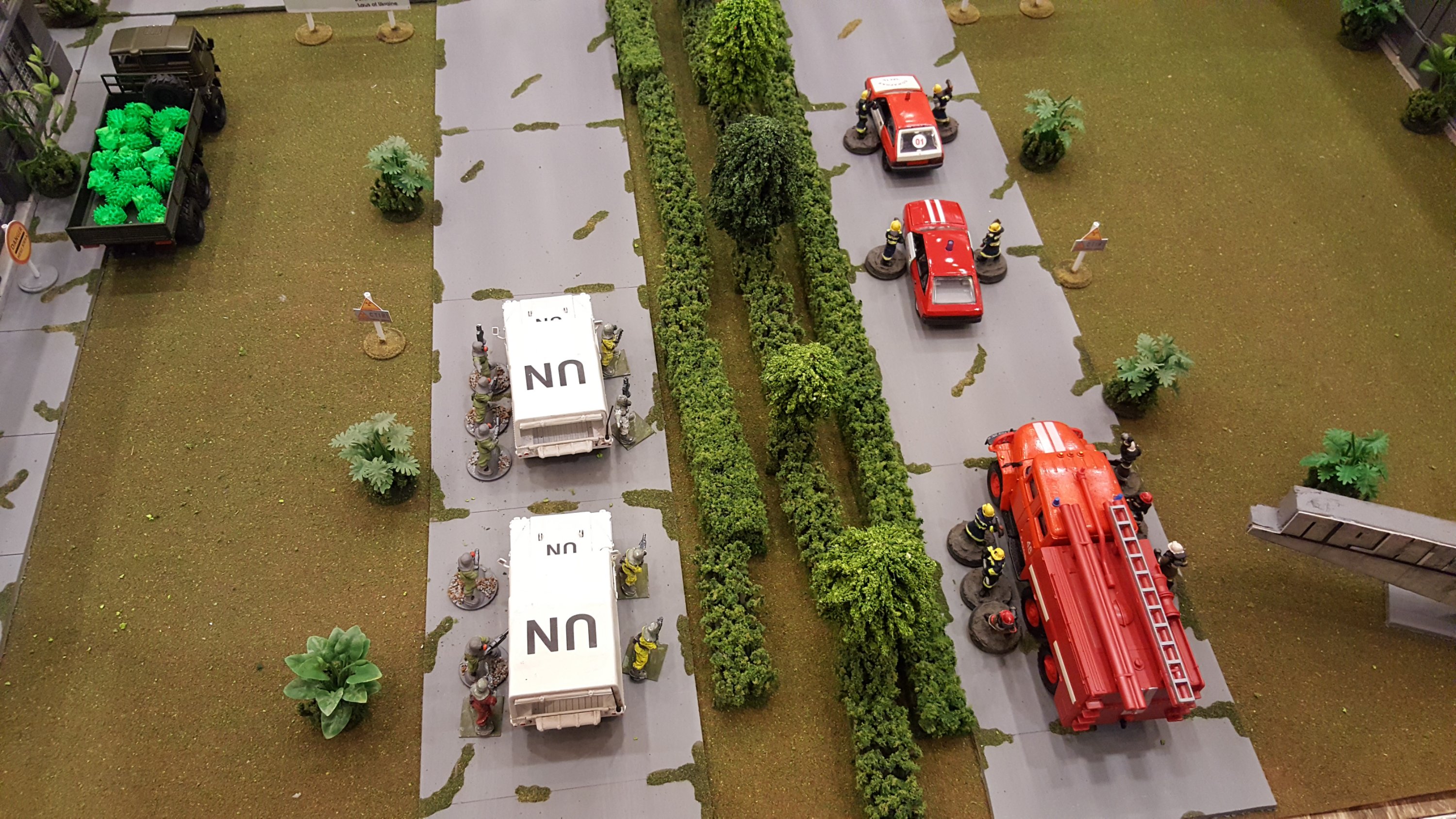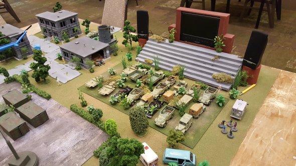 One of the beautiful tables setup was for an ants vs mankind game – I didn’t see the exposition so can’t inform, but the table was magnificent – there must have been 3-4K worth of terrain/ vehicles/ miniatures at the start before the giant ants even popped up.