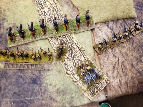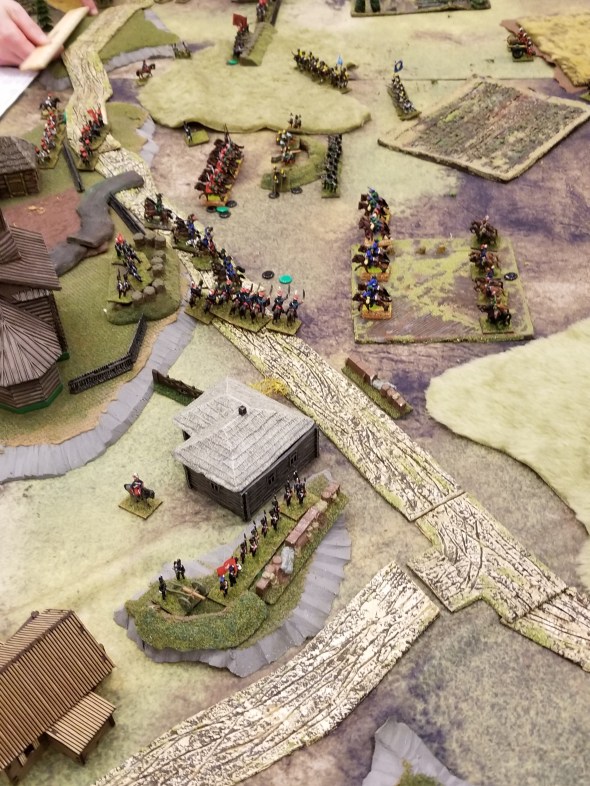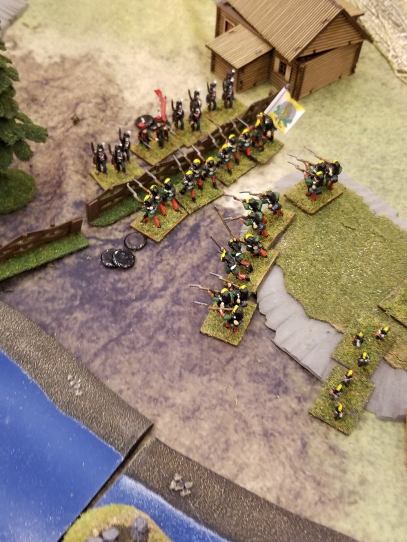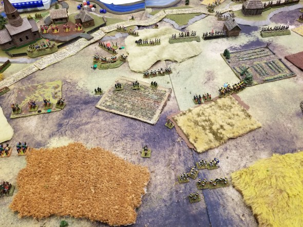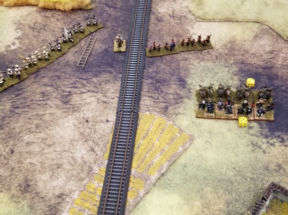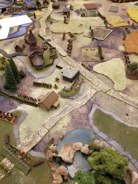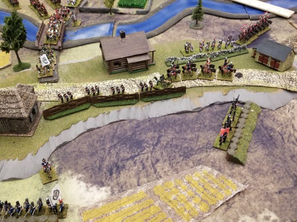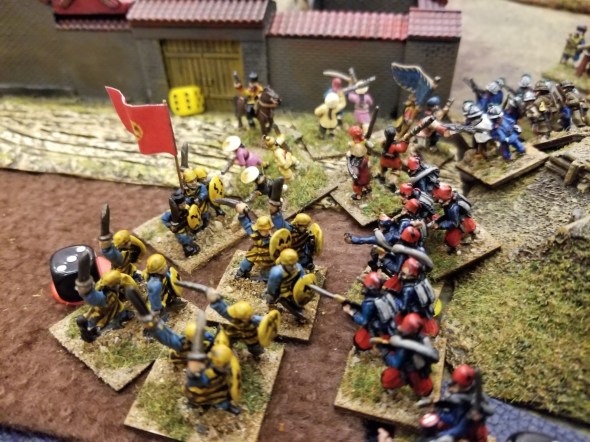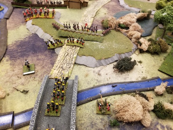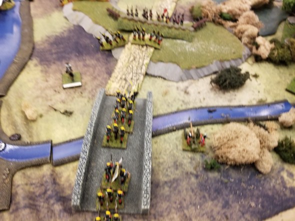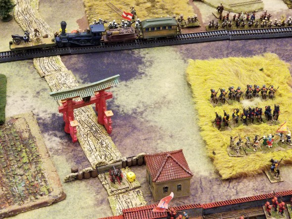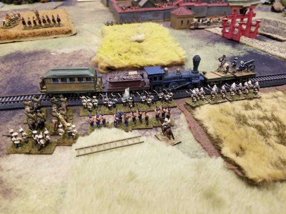 An actual boarding action on the junks in the river – this actually seesawed for three turns….