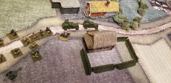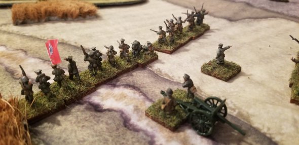 Game played – as the Bolshevik commander I lost soundly. Our first pass at WW1 operational rules was mostly a combo of Contemptible Little Armies for movement, fire mechanics and morale, with card activation from Too Fat Lardies pre0