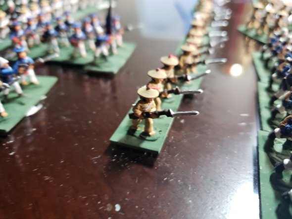 An ebay auction a couple of weeks ago revealed a series of fairly aged 15mm painted armies in various states, sorting through them I saw a french colonial force which had a number of the rarer Frontier figures – tirallieurs Tonkinese and Annamites.