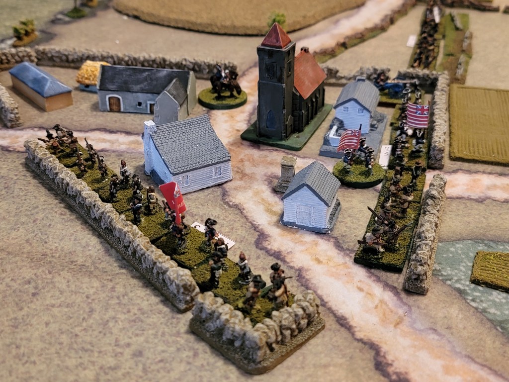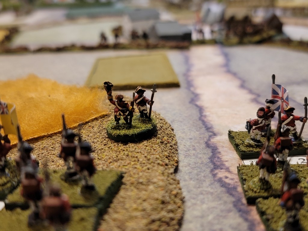 A Massachusetts Regt behind hasty works faces the grenadiers on the edge of Sutton