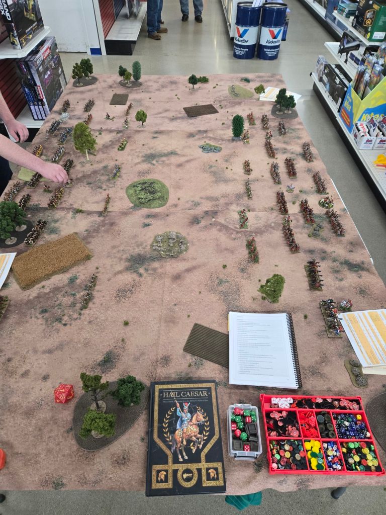 My son and I have been playtesting some scenarios for an upcoming book on Caesar’s Civil Wars. We planned to run a smaller scenario, but on the way to the shop, we decided we had more than enough troops to do the Pharsalus scenario.