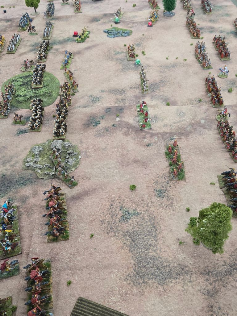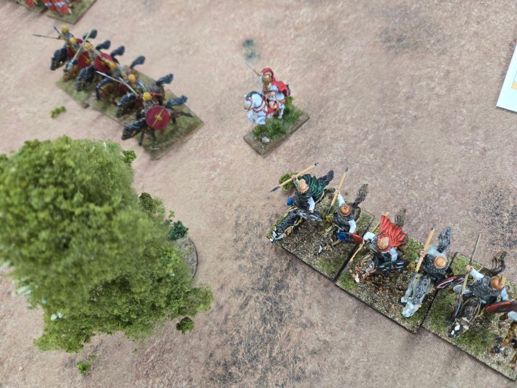 The battle was fairly evenly matched – we added the classic ambush that Caesar accounts for on his left wing. As Caesar drew our Republican cavalry into the trap, it became a critical part of the game. The Republican cavalry outnumbered the Caesarians by more than two to one historically and it was this ambush that helped even the impact on this critical battle