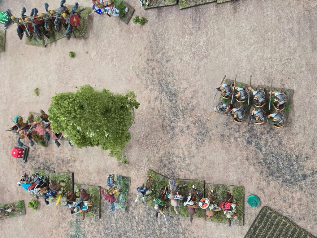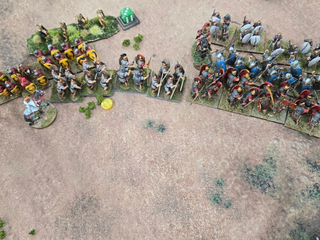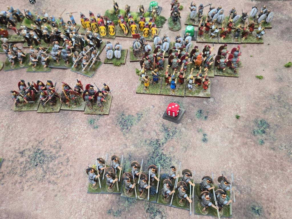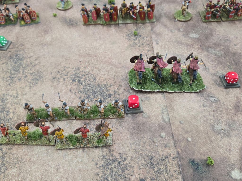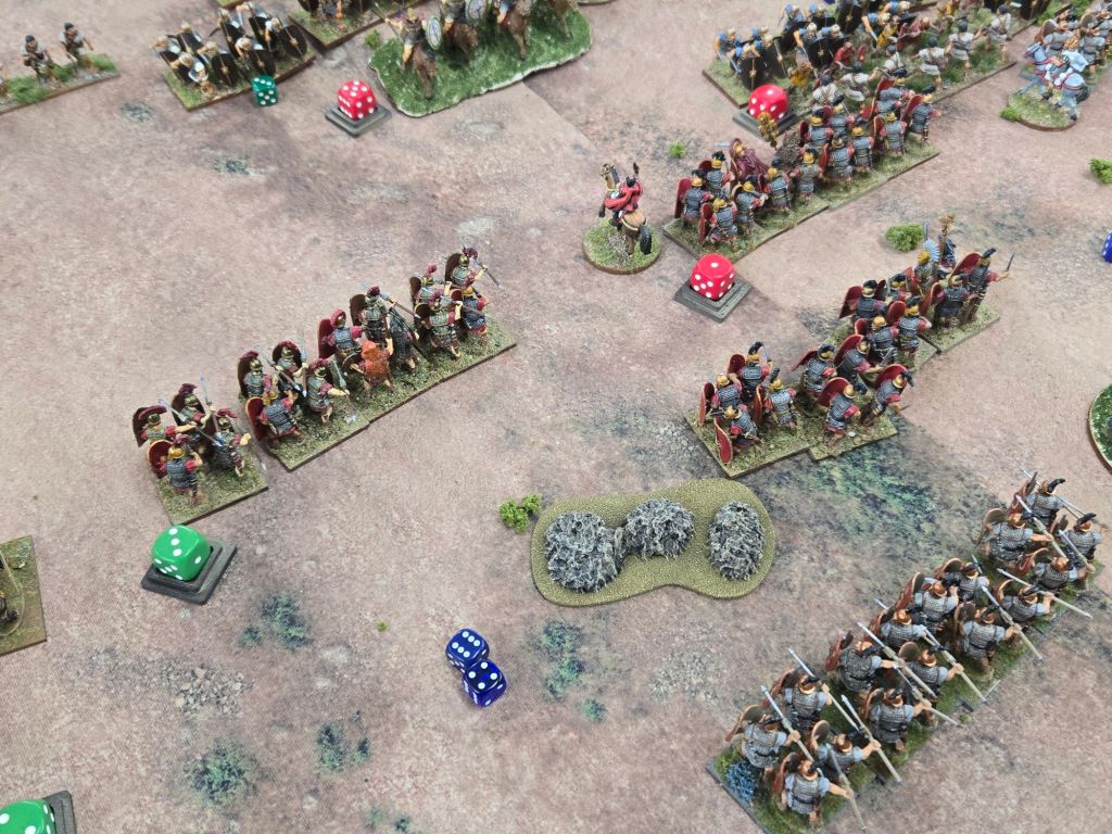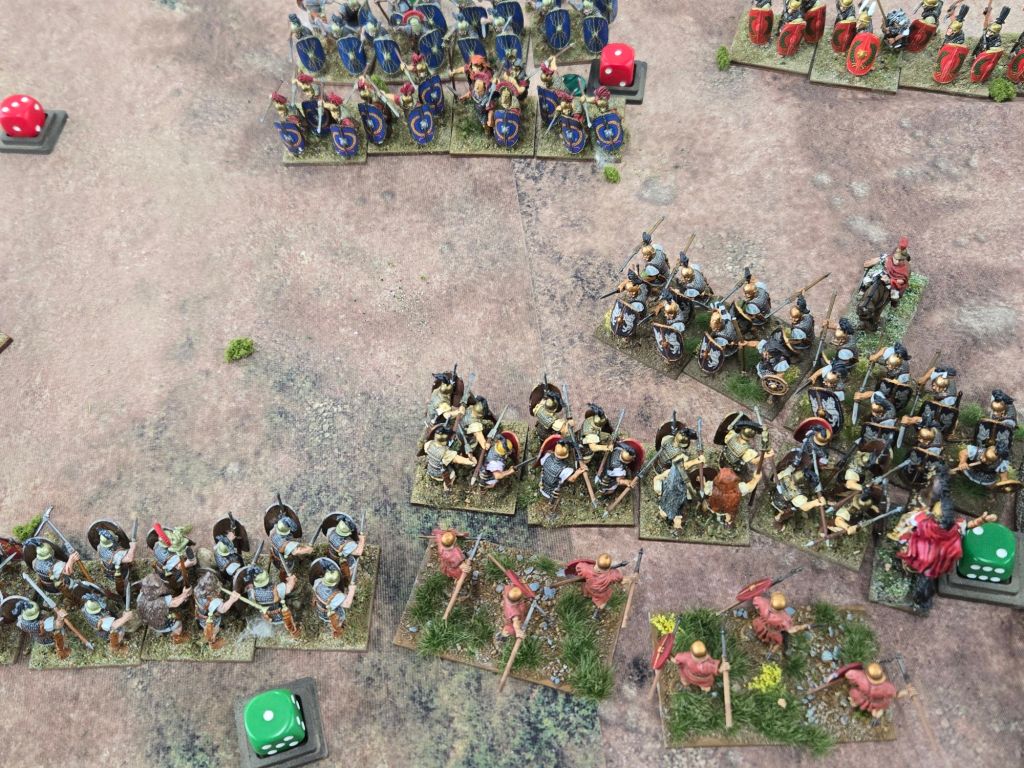 Amusingly, on Turn 8 Caesar was attached to his Gallic cavalry to add dice to a critical attack on the Republican’s only veteran legionary unit. When it came time to check leader casualty, the dice came up 11 – plus the three he used in the combat, and down went Caesar. Fortunately for history perhaps, he rolled a 4 on the result, so while injured, he wasn’t ended.